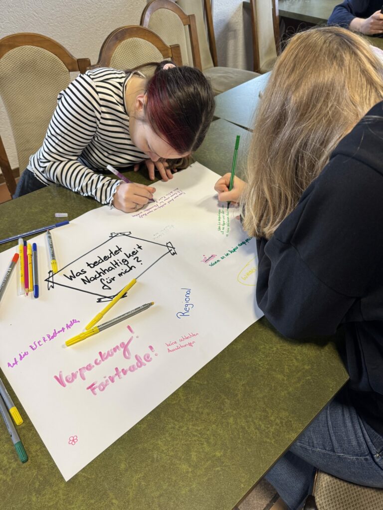 Die Woche war ein bunter Mix aus inhaltlichen Workshops, praktischen Aktionen und viel Spaß. Zu Beginn beschäftigten sich die Teilnehmer*innen mit den globalen Lieferketten, insbesondere der Frage „Woher kommt mein T-Shirt und wer verdient eigentlich daran?“. Am zweiten Tag stand das Thema Ernährung im Mittelpunkt: Die Jugendlichen gingen einkaufen und bereiteten für alle ein gemeinsames Abendessen zu. In einer anschließenden Diskussionsrunde reflektierten sie darüber, wie nachhaltig ihre Einkäufe tatsächlich waren.