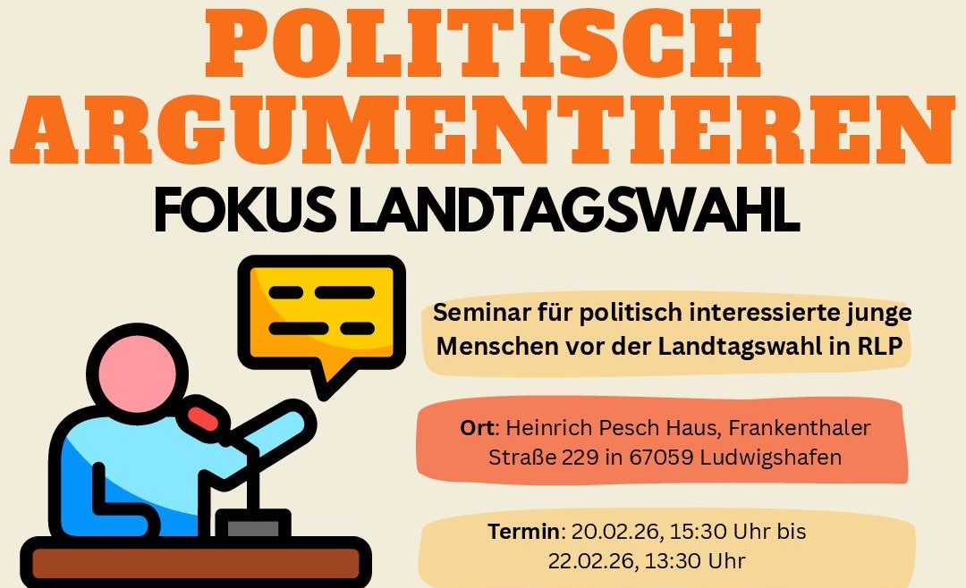 Wir laden euch herzlich ein zum Seminar „Politisch Argumentieren – Fokus Landtagswahl“ von 20. bis 22. Februar 2026